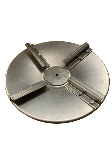 Simple aluminum spreader plate for fixed 24-meter width, 230 mm diameter, with 8 mm diameter center hole. Supplied with blades and hub.