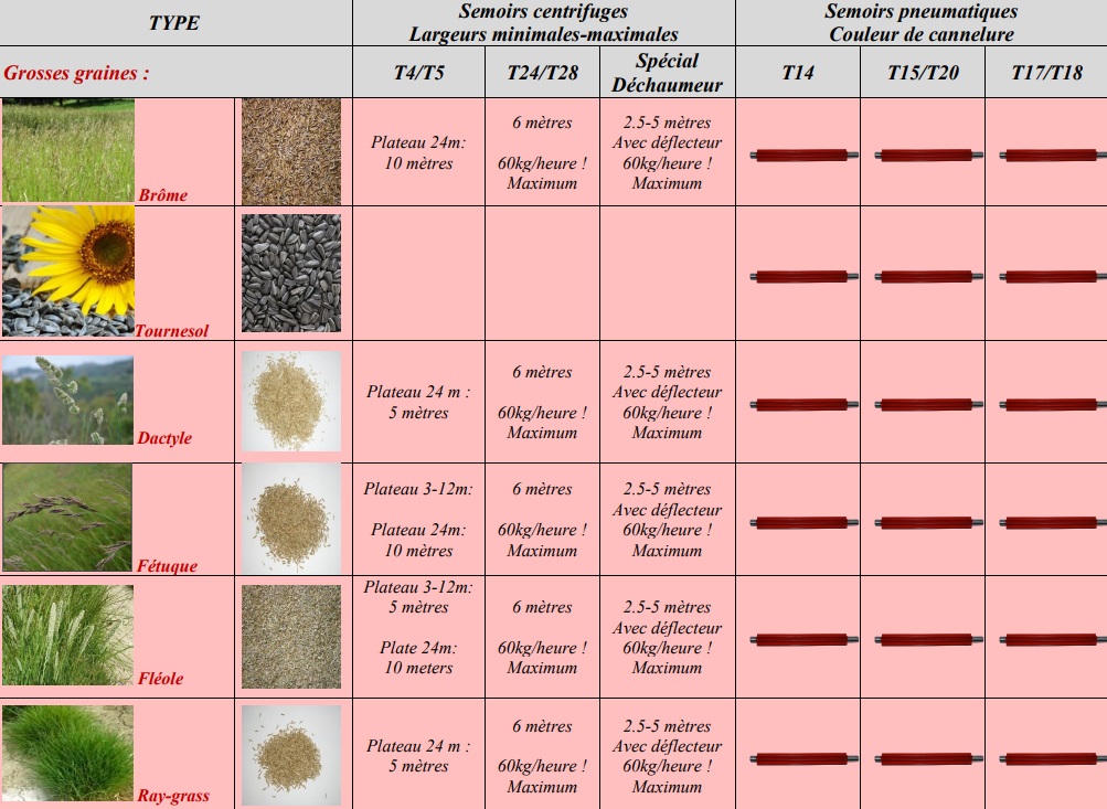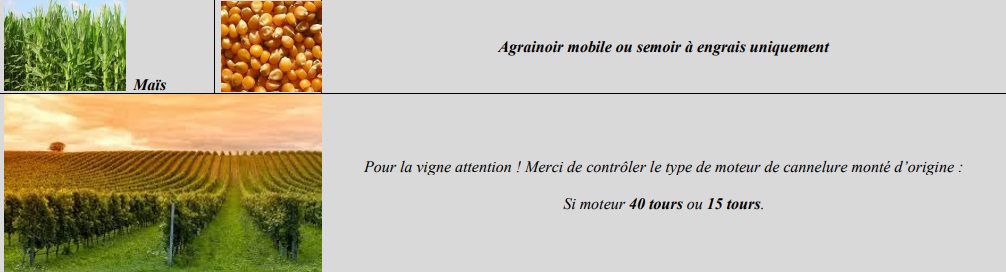 Il existe un choix de 5 cannelures différentes. La cannelure se choisit selon la taille de la graine à semer.