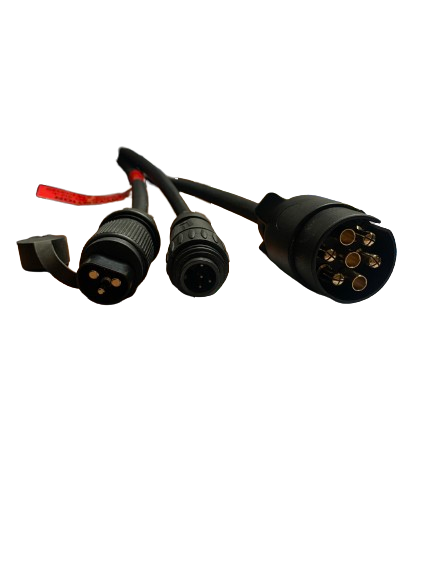 - Une prise 7 plots vitesse à connecter en cabine du tracteur. La longueur du câble est de 1,5 mètres.