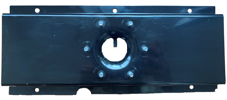 Pièce rectangulaire en acier avec peinture époxy noire.